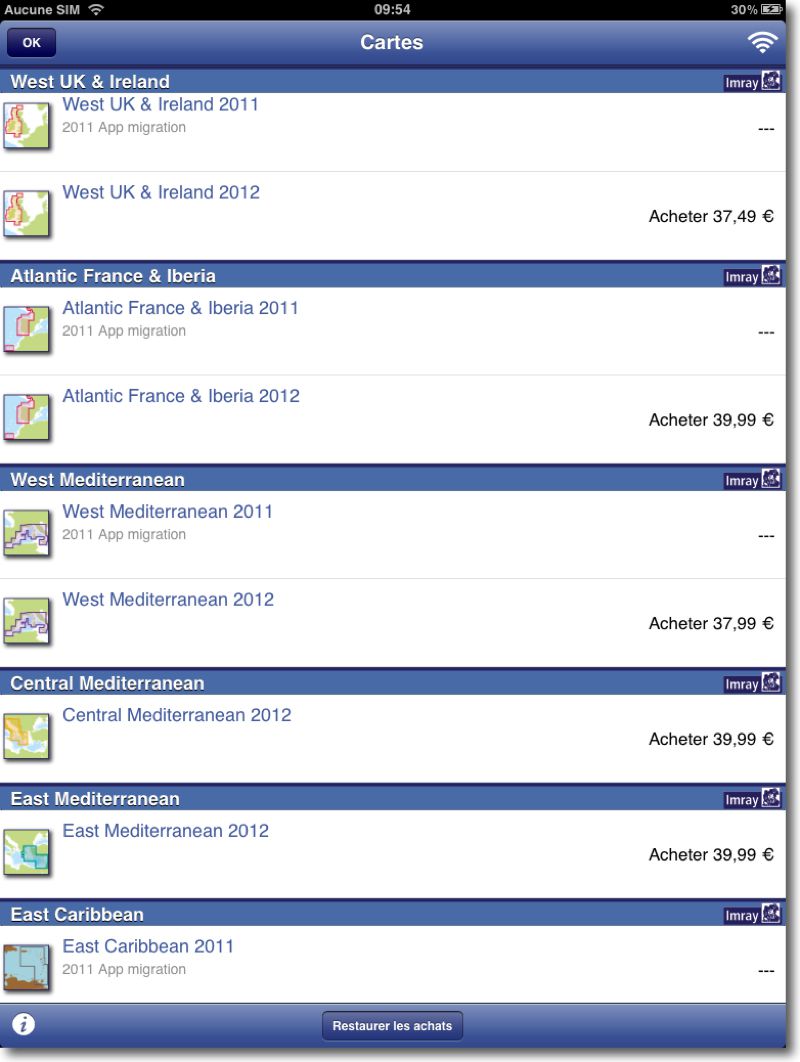March, the 7 June 2012, Imray has released its navigation app for iPhone and iPad.