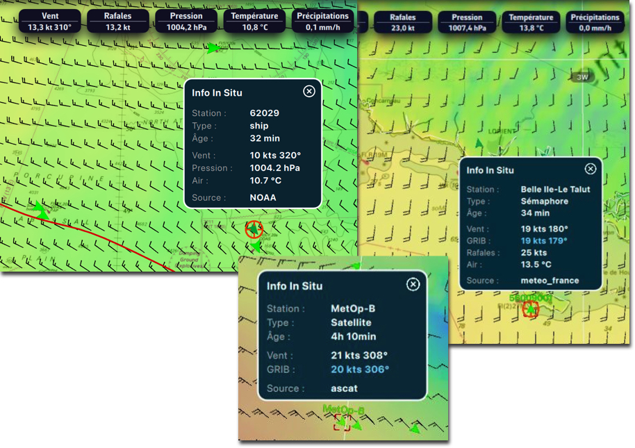 Weather and ocean data In-situ are observational data broadcast in real time, or quasi-real, from different sources : semaphores, ships at sea, fixed or drifting buoys, airports, and also specialized satellites. This data is available as open data to the general public and also for reuse by the economic sphere.. The new NavimetriX application allows you to display this data to complete the forecasts of models distributed in GRIB format.