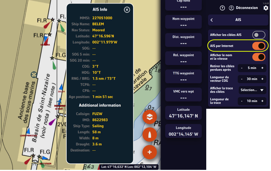 - AIS par Internet – Cibles AIS provenant du réseau AISHub.