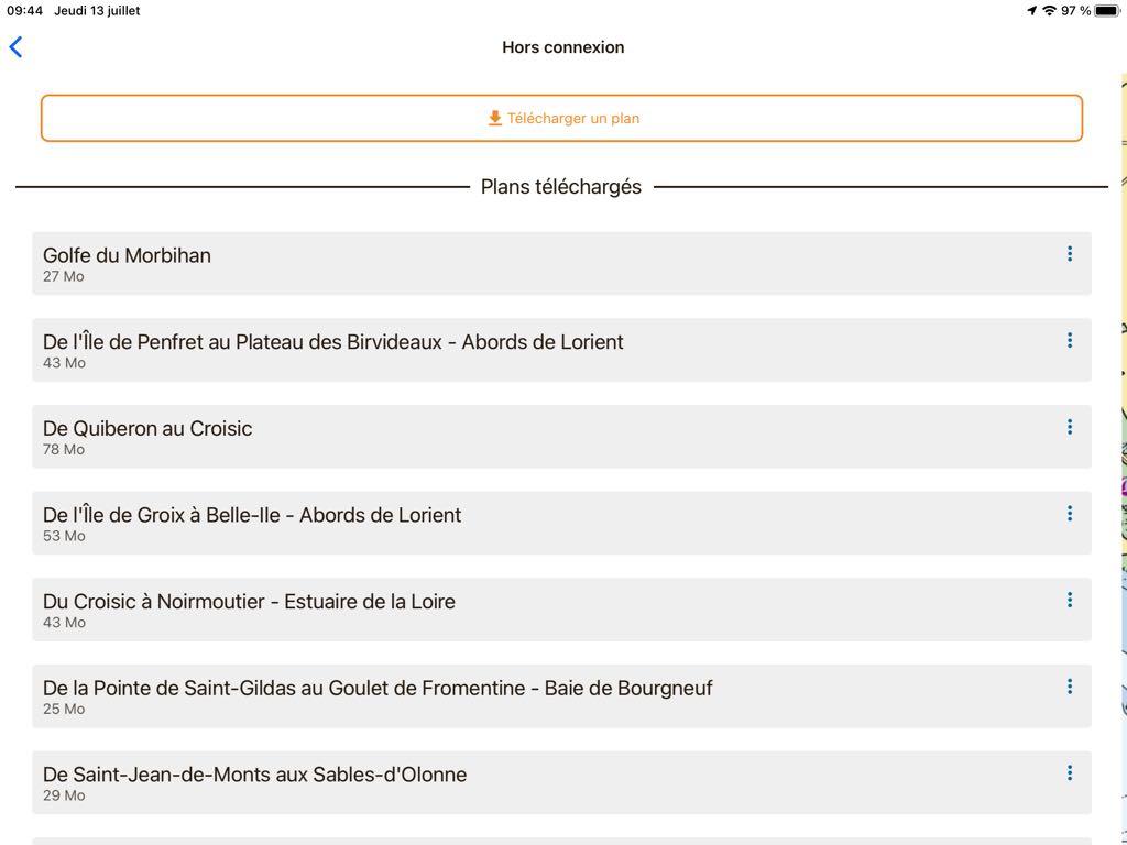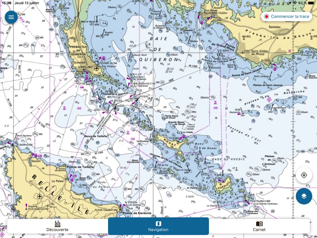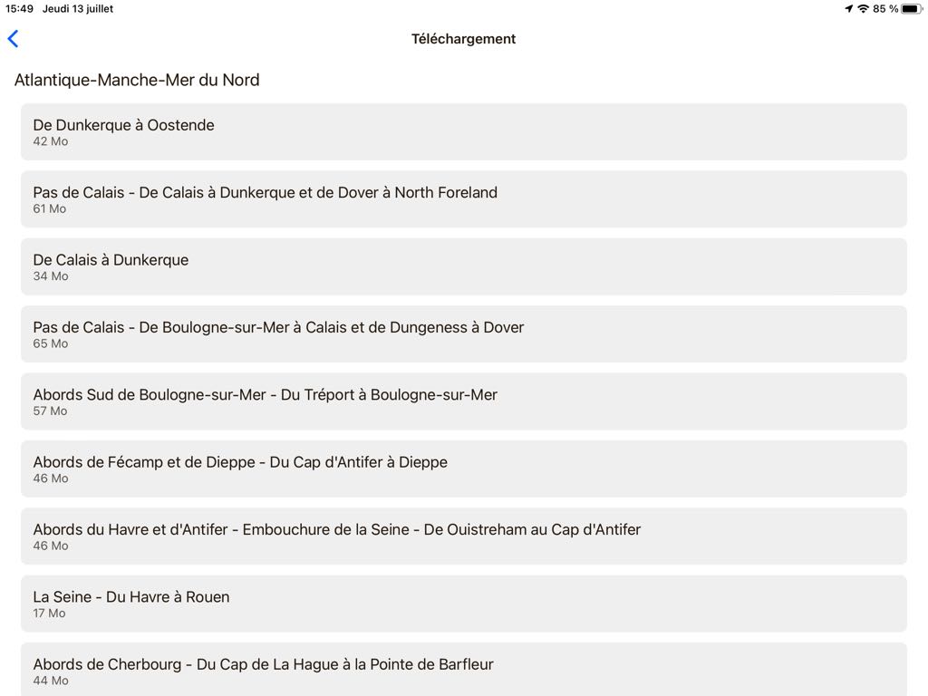 The real surprise comes from SHOM raster charting, available free of charge for all areas covered, and can be downloaded at will – and updated – for offline use. The display at all levels of scale is smooth and the downloads in small predefined areas are very fast.