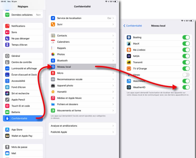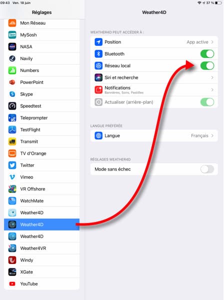 Since then, Many of you are no longer able to connect certain applications (Weather4D, iNavX, aso.) Wi-Fi-connected devices : Iridium GO!®, Multiplexers, Miscellaneous NMEA gateways. To do this, you must activate this "Local network" option for the application concerned.